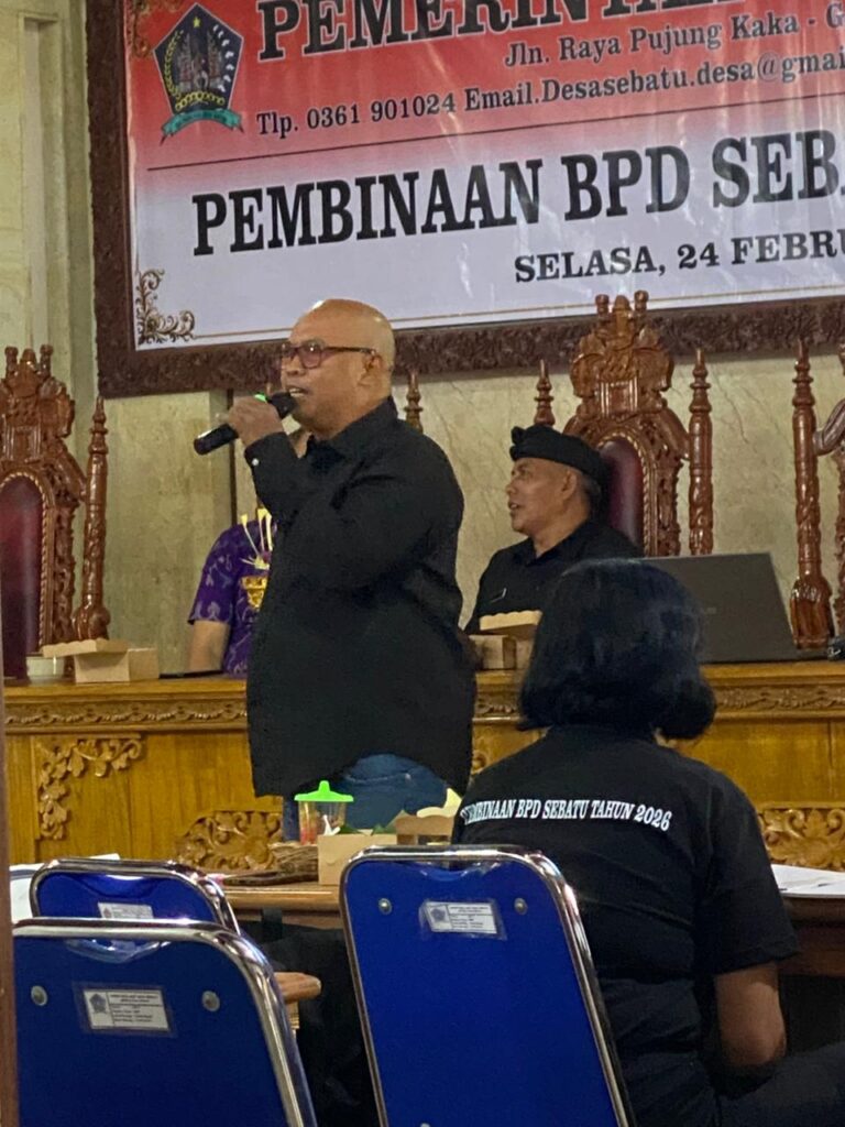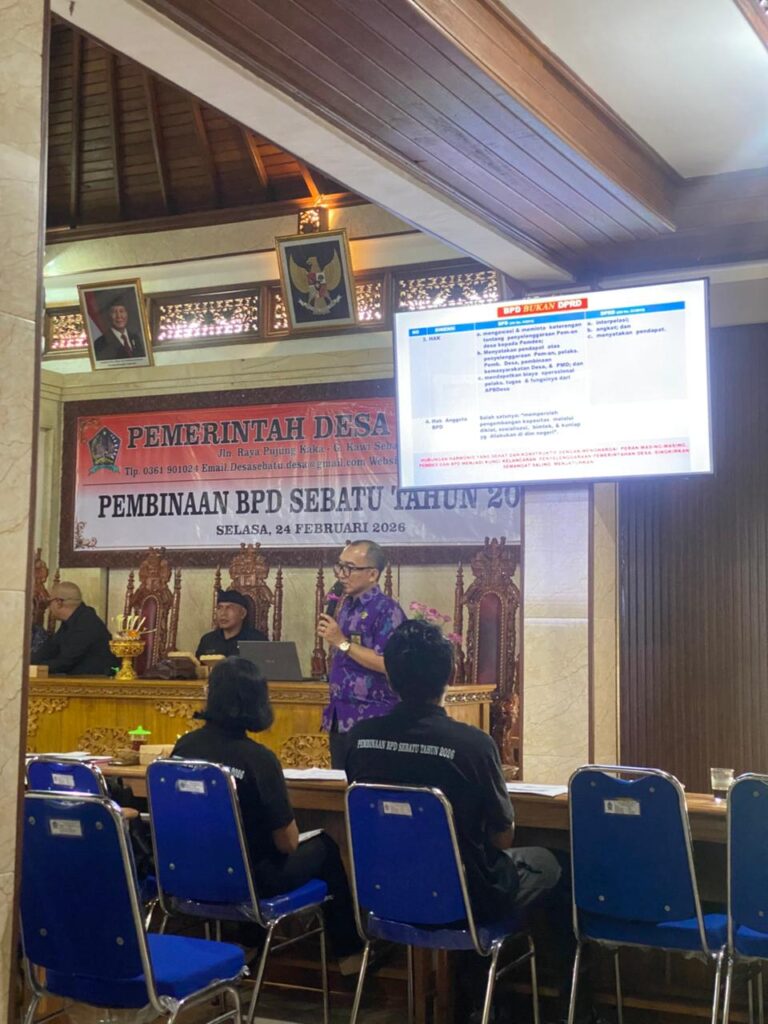 Sebatu, 24 Pebruari 2026 — Pemerintah Desa Sebatu melaksanakan kegiatan Pembinaan Badan Permusyawaratan Desa (BPD) Desa Sebatu pada hari Selasa, 24 Pebruari 2026. Kegiatan ini diikuti oleh seluruh anggota BPD Desa Sebatu sebagai bentuk komitmen bersama dalam meningkatkan kapasitas, pemahaman regulasi, serta penguatan peran kelembagaan BPD dalam sistem pemerintahan desa.